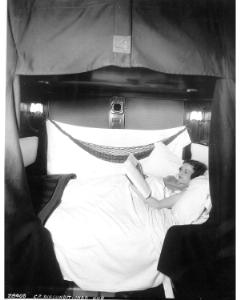 Accession: 1984.005.055 Object: PHOTO Title: Views of Sleeping Cars Description: CPR Sleeping Car collection, A/C car lady reading in berth