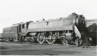 Accession: 1985.009.009 Object: photograph : b&w Title: Railroad Description: Loco #3001 Medicine Hat (1954) B & W Size: 5' x 3 1/2' Location: 1-2-7-39 Indexed In: Railroad » Rolling Stock » Locomotive » Steam » CP Rail » #3001