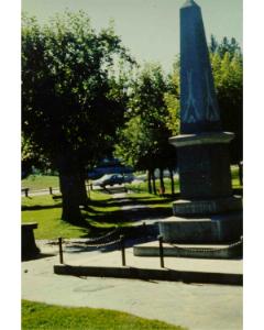Accession: 1986.023.002 Object: photograph : col Title: Cranbrook, B.C. Description: Cenotaph in Rotary Park in summer