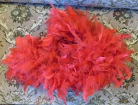 Accession: 1986.051.003 Object: clothing : female, accessory, boa Title: Boa Description: Red feathered Location: Rutherglen Indexed In: Cranbrook » Personalities » Letter R » Roberts, Julie