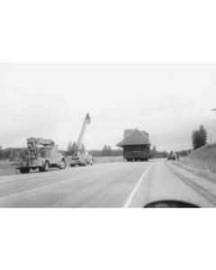 Accession: 1987.029.028 Object: photograph : b&w Title: Cranbrook, B.C. Description: Station, clearing raised hydro wires on highway