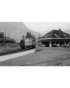 Accession: 1987.084.220 Object: PHOTO Title: Train Engines Description: Loco #4065 at Castlegar Station (1972)