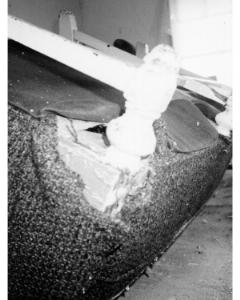 Accession: 1988.004.002 Object: photograph : b&w, mount Title: Elko Station and Solarium Chairs Description: Solarium parlour chair legs being stripped of paint
