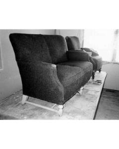 Accession: 1988.004.024 Object: photograph : b&w Title: Elko Station and Solarium Chairs Description: Solarium parlour sofas under restoration