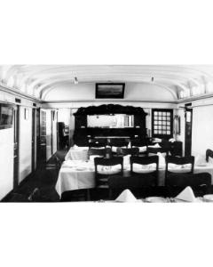 Accession: 1988.015.005 Object: photograph : b&w Title: Sternwheeler/River Boat Description: Dining Room of a river boat or sternwheeler B & W Location: 1-3-1-19 Indexed In: Transportation & Travel » Boats & Boating » Inland » Unknown