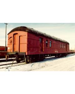 Accession: 1988.043.004 Object: photograph : col Title: Train Cars in Calgary Description: Exterior RPO Car #3774 (1986)