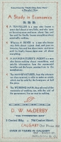 Accession: 1988.058.017 Object: textual record Title: D W McDerby, Calgary Description: 'A Study in Economics,' Ink Blotter