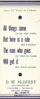 Item Date: 193? - 195? Size: 23 x 10 cm Creator: DW McDerby "The Typewriter Man" Location: 1-4-4-3 Indexed In: Cities » Alberta » Calgary » Business » D W McDerby