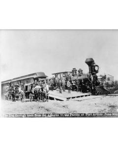 Accession: 1988.107.007 Object: PHOTO Title: Locomotives Description: First train from Atlantic to Pacific at Port Arthur (1886) Location: 1-3-1-32 Indexed In: Railroad » Rolling Stock » Passenger » Train
