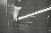 Accession: 1990.026.038 Object: photograph : b&w Title: Railway Description: Train at station at night