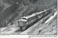 B & W (from Calendar)Location: PHOTO.OS.0032.0011 Indexed In: Railroad » Rolling Stock » Passenger » Train » California Zephyr