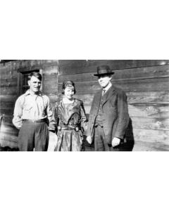 Accession: 1990.108.007 Object: photograph : b&w Title: Cranbrook, B.C. Description: Alex Brogan, Lena Brogan, Bill Smyth (1922)