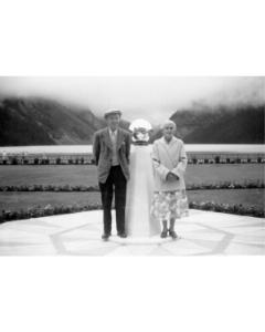 Accession: 1990.108.016 Object: photograph : b&w Title: Cranbrook, B.C. Description: Mr & Mrs George Cockshott at Lake Louise (1958)