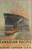 Accession: 1992.009.005 Object: Postcard : col Title: Travel by Ship or Train with Canadian Pacific Description: 'Empress of Australia' (c1925) (CP Ships poster) Location: 1-3-2-19 Indexed In: Railroad » Publication » Poster » CP Ships