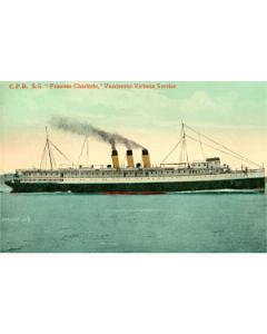 Click to Enlarge Accession: 1994.019.020 Object: Postcard : col Title: Description: CPR 'SS Princess Charlotte' Size: 9 x 14 cm Location: 1-3-3-35 Indexed In: Transportation & Travel » Boats & Boating » Ocean Liners