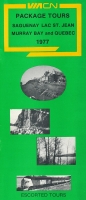 Accession: 1994.039.002 Object: textual record : brochure Title: American Railway Tours and Schedules Description: VIA CN package tours Item Date: ca 1977 Size: 22 x 10 cm Location: PF.0189.0009 Indexed In: Railroad » Publication » Brochure » VIA Rail
