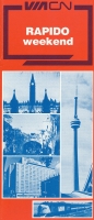 Accession: 1994.039.003 Object: textual record : brochure Title: American Railway Tours and Schedules Description: VIA CN (Rapido weekend) Item Date: ca 1977 Size: 22 x 10 cm Location: PF.0189.0009 Indexed In: Railroad » Publication » Brochure » VIA Rail