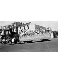 Accession: 1995.005.059 Object: Photograph : b&w Title: Collection of Jacob (Jack) Ritter Description: Parade (1948?) passing Ellen Hotel
