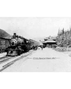 Accession: 1997.020.002 Object: Photograph : b&w Title: Local History Description: 'CPR Depot at Crows Nest' Size: 6 x 8 cm Location: 1-3-4-14 Indexed In: Cities » Alberta » Crowsnest Pass » Building