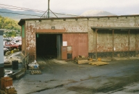 Accession: 1997.031.002 Object: Photograph : col Title: Canadian Pacific Railway Description: CPR Roundhouse Trail, east wall showing access door used by Cominco Size: 10 x 15 cm Location: 1-3-4-16 Indexed In: Cities » British Columbia » West Kootenay » Trail » Building