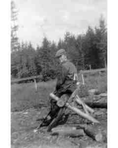 Accession: 1999.033.036 Object: photograph : b&w Title: Fred Payne Collection Description: Fred Payne sawing wood