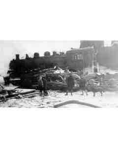Click to Enlarge Accession: 1999.033.045 Object: photograph : b&w Title: Fred Payne Collection Description: Boiler explosion at Golden Location: 1-3-6-5 Indexed In: Railroad » Accident » Golden