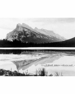 Accession: 1999.037.014 Object: photograph : b&w Title: Canadian Rocky Mountains Description: 'Mt Rundle, Reflection in Vermillion Lake' Location: 1-3-6-6 Indexed In: Physical Features » Mountain