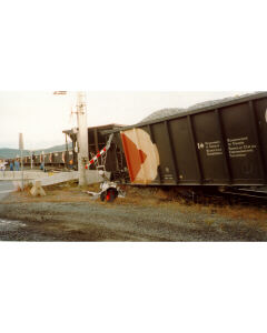 Click to Enlarge Accession: 1999.059.014 Object: photograph : b&w Title: Cranbrook Description: Accident at King Street crossing, Cranbrook Location: 1-3-6-2 Indexed In: Railroad » Accident » Cranbrook