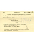 Accession: 2000.038.010 Object: texual record : receipt Title: General Register Office Description: The Registrar General forwards the accompanying Certificate, the Fees for which have been duly received. Item Date: 1933 Size: 10 x 17 cm Location: MSS.0109.0021 Indexed In: Cranbrook » Personalities » Letter T » Thorpe, Mrs. J.C.