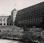 Accession: 2002.084.114 Object: Photograph : b&w Title: Canadian Pacific Railway Description: Front view of the Chateau Lake Louise