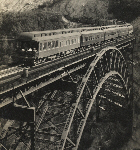 Accession: 2002.084.131 Object: Postcard : b&w Title: Canadian Pacific Railway Description: Stoney Creek Bridge has a passenger train crossing over a deep and wide chasm. Size: 14 x 9 cm Location: 1-3-7-12 Indexed In: Railroad » View