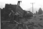 Accession: 2002.096.004 Object: Photograph : b&w Title: Canadian Pacific Railway Description: CPR rail line near Wardner BC, Steam Locomotive and tender #2380. Workers can be seen near the rear of the tender. A derailment Item Date: ca 1952 Size: 6 x 9 cm Location: 1-3-7-16 Indexed In: Railroad » Accident