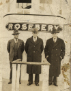 Accession: 2003.034.001 Object: photograph : b&w Title: Canadian Pacific Railway Description: B&W photo taken 1943, of Supt. N.J.McLean; Capt.. Fitzgerald and RoadMaster Swanson on board Rosebery.