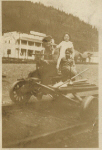 Rose age 7/8, brother Peter age 5, and Section man Tony Sherbo 50 yrs, worked for John Lorenzo, section foreman. Rose's fatherSize: 8.5 x 6 cm Location: 1-3-7-32 Indexed In: Cities » British Columbia » East Kootenay » Yahk » Building