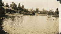 Accession: 2003.037.001.394 Object: Photograph : b&w Title: The MacPherson and Bridges Family Photo Albums Description: A large circular swimming pool Size: 24 x 40 cm Location: PHOTO.OS.0032.0036 Indexed In: Cranbrook » Personalities » Letter M » MacPherson family