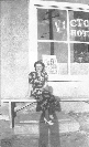 Accession: 2003.040.002 Object: photograph : b&w, email Title: Cranbrook, B.C. Description: B&W of Dora Kolisnek sitting in front of the Victoria Hotel, Cranbrook sometime between 1920 - 1943
