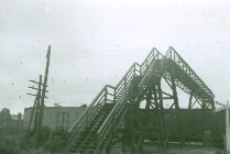 Accession: 2004.006.529 Object: photograph : b&w Title: John Poulsen Collection Description: CN rail line, with over head pedestrian foot bridge