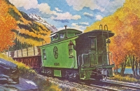 Print on front of note is of Caboose in mountains green logo not recognizable.Size: 9 x 13 cm Publisher: The Leaning Tree, Boulder Colorado Location: 1-3-8-18 Indexed In: Cranbrook » Personalities » Letter P » Poulsen, John