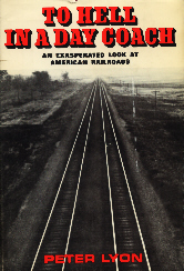 Accession: 2004.018.005 Object: book : hardcover Title: To Hell In A Day Coach, an Exasperated Look at American Railorads Description: Item Date: 1968 Size: 15 x 20 cm Pages: 324 Author: Lyon, Peter Publisher: J. B. Lippincott Co., New York Location: Library Indexed In: Reference » Book » By Author » Letter L » Lyon, Peter