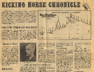 Accession: 2004.031.001 Object: textual record : newspaper article, printed Title: Kicking Horse Chronicle Description: Kicking Horse Chronicle 1985; British Columbia and the CPR stories of the CPR 1858; 1884; 1885; 1907; 1909 Size: 11" x 14" Location: 2-2-2-4 Indexed In: Physical Features » River » Kicking Horse River