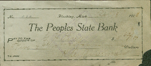 Accession: 2006.003.001 Object: textual record : receipt Title: H.A. Amurman Canceled Cheque Description: Cheque #202 made out to E.H. Perry. Paid by H.A. Amurman. Apr. 18, 1918, The Peoples State Bank, Flushing Mich. Found in wall of home at 134 10th Ave. S Cranbrook, BC during renovations by the owners Farren, Sharron and Ernie Billey c 2006. Item Date: April 18, 1913 Size: 7 x 16 cm Location: 2-1-1-29 Indexed In: Cranbrook » Building » Residence » By Address » 10th Avenue S #134