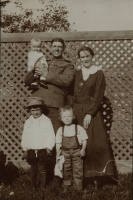 Accession: 2008.001.008 Object: Photograph : b&w Title: Family of Frederic and Winnifred Patton Description: Back row: (left to right) Graham (Hamie), baby; Frederic Dufferin Patton, father; Winnifred Mary Patton, mother. Front row: Douglas, with hat, Barbara Winnifred Patton.