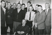 Oswald Cochrane, A.J. Duncombe, Herb Hawk, Phil Bolton, Ren Davison, W. G. Gale, Walter Fanning, W. W. Thompson, Doug Hope, Richard ShiellItem Date: Mar. 26, 1964 Size: 12 x 17 cm Location: 1-4-2-7 Indexed In: Cranbrook » Personalities » Letter H » Hawk, Herb