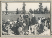 Accession: 2009.007.015 Object: photograph : b&w, mount Title: A.J. Balment Description: Balment being honoured with Freedom of the City - tri-fold cardboard frame Item Date: ca 1949 Size: 11.5 x 16.5 cm photo, 20 x 23 cm fr Location: 1-4-2-7 Indexed In: Cranbrook » Personalities » Letter B » Balment, Al