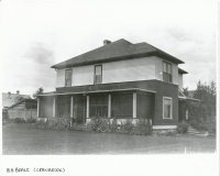 Accession: 2009.030.156 Object: photograph : b&w Title: M.A. Beale Home Description: two story house with veranda and bushes around veranda Size: 20.2 x 25.2 cm Location: 1-4-8-1 Indexed In: Cranbrook » Building » Residence