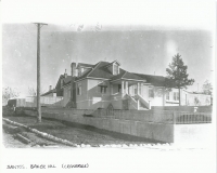 Accession: 2009.030.192 Object: photograph : b&w Title: King Edwards School Description: front and left side of school, fireplace chimney on left side of house, cement retaining wall around house with small wrought iron fence on top of retaining wall, telephone pole on left of house at Baker Hill Size: 20.2 x 25.2 cm Location: 1-4-8-37 Indexed In: Cranbrook » Building » School