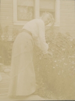 Accession: 2009.030.286 Object: photograph : b&w, mounted Title: Mrs. A. C. Piggott Description: Mrs. Piggott bending over picking flowers from her flower garden Item Date: 1899 Size: 9 x 7 cm Photographer: H.T. Nation Location: PHOTO.OS.0031.0030 Indexed In: Cranbrook » Personalities » Letter P » Piggott, Mrs. A.C.