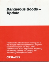 Accession: 2011.038.013 Object: textual record : promotional package Title: CP Rail Moves the Machines That Move Mountains Description: Promotional package detailing the availability of CP Rail to move large heavy equipment to any job site. This package includes Flagging Rules for single track & two or more main tracks, booklet "Working on a track gang", Maintenance of way training, "Dangerous Goods - Update" booklet, CP Rail map, CP Rail facilities border map inside single-flap folder, black. Item Date: April 1979 Size: 24 x 31.75 x .5 cm Pages: 60 Author: Canadian Pacific Railway Company Location: PF.0193.0078 Indexed In: Railroad » Publication » Map