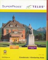 Accession: 2012.027.024 Object: textual record : directory, printed Title: Telus - Cranbrook / Kimberley area Description: Telus SuperPages Phone Directory including Community Guide and Restaurant / Menu Section. From Frank (retired Cranbrook Fire Chief) & Delphine (owner of Colene's Dress Shoppe) Colonna's collection. Item Date: 2004 / 2005 Size: 21.5 x 26.5 x 1.5 cm Pages: 460 Publisher: Telus Location: Library - Reference Indexed In: Communications » Telephone