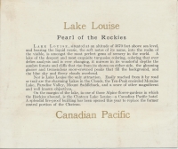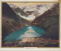 Accession: 2013.002.001 Object: textual record : menu Title: Soo Pacific Express Diner Menu Description: Soo Pacific Express Diner Menu, possibly 1928. Artist's rendition of Lake Louise on front, including CP Hotel, write up on back of menu of Lake Louise, hotel & mountains. Menu inside with tissue between the pages for protection. Paper is cardstock weight. Item Date: 1928? Size: 20 x 17 cm folded, 39.5 x 17 cm unf Publisher: Canadian Pacific Railway Indexed In: Railroad » Rolling Stock » Passenger » Diner